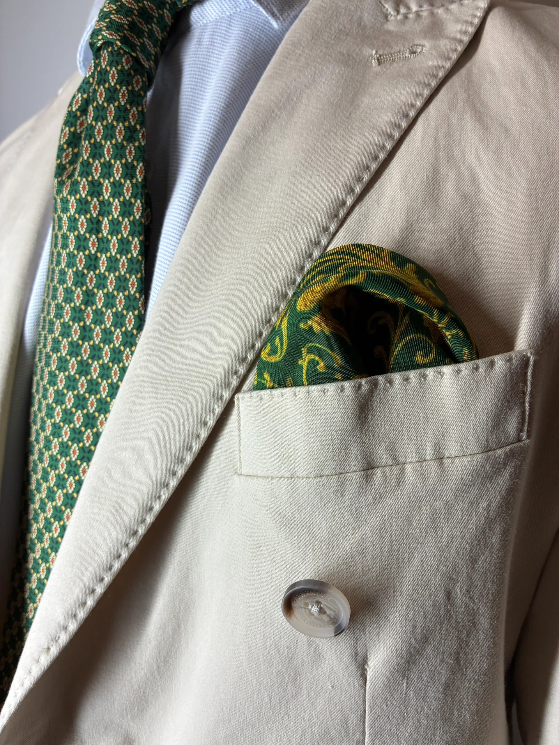 La auténtica elegancia reside en lo irrepetible. Por ello, nuestra firma ofrece un servicio exclusivo de pañuelos de seda de bolsillo completamente personalizados, concebido para quienes valoran la distinción en cada detalle.
